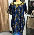 Make a style statement with the "Majestic Vibe" dress, a unique piece with a vibrant geometric design. Designed to combine elegance and comfort, this shift dress showcases traditional patterns revisited in a palette of royal blue, gold, black and white. The structured V-neck adds a bold, modern touch